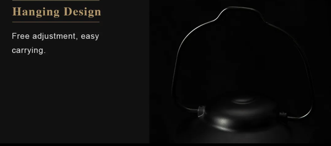 Easy carrying hook can hang to tree branches, lamp stands or other places.