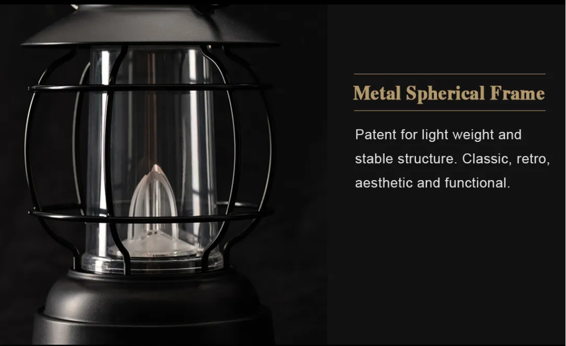 could perform three lighting modes, dimming, flame and breathing. Metal spherical,